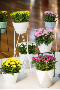 Our additional stand was to release our newest product to the public: Potted Chrysanthemums. The main aim of this was to show people how these pots can be displayed in the home or office, with a modern theme. The pots were showcased in a variety of sleek and elegant cover pots and also in several pot stands which are on trend with the times.